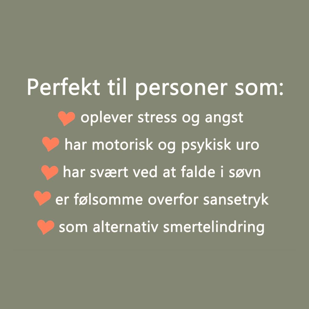 Den opvarmede vægtpose kan også fungere som smertestillende ved feks. ømme muskler, menstruationssmerter samt til at øget velvære.