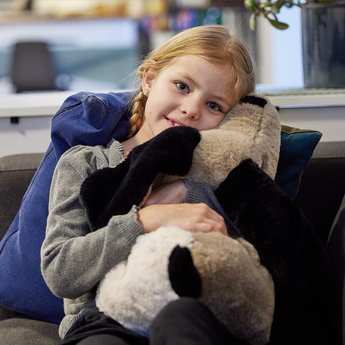 Størrelsen på FLOOFERS® er skabt således, at både børn, unge, voksne og ældre kan have glæde og gavn af både tyngdebamserne, tyngdepuderne og tyngdetæpperne.